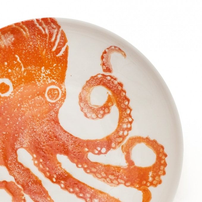 Celebrate artisanal craftsmanship with our Ocean Collection, handmade in Italy using traditional techniques. Each piece is individually sponge-decorated with a reactive glaze, creating rich, evocative imagery of sea creatures. Due to this unique hand-finished process, no two items are exactly alike—each one is a true original.