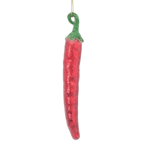 Brighten your holiday decor with this delightful glass Christmas decoration featuring a vibrant Chilli!