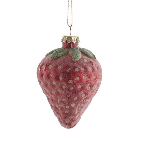 Brighten your holiday decor with this delightful glass Christmas decoration featuring a vibrant Red Strawberry!