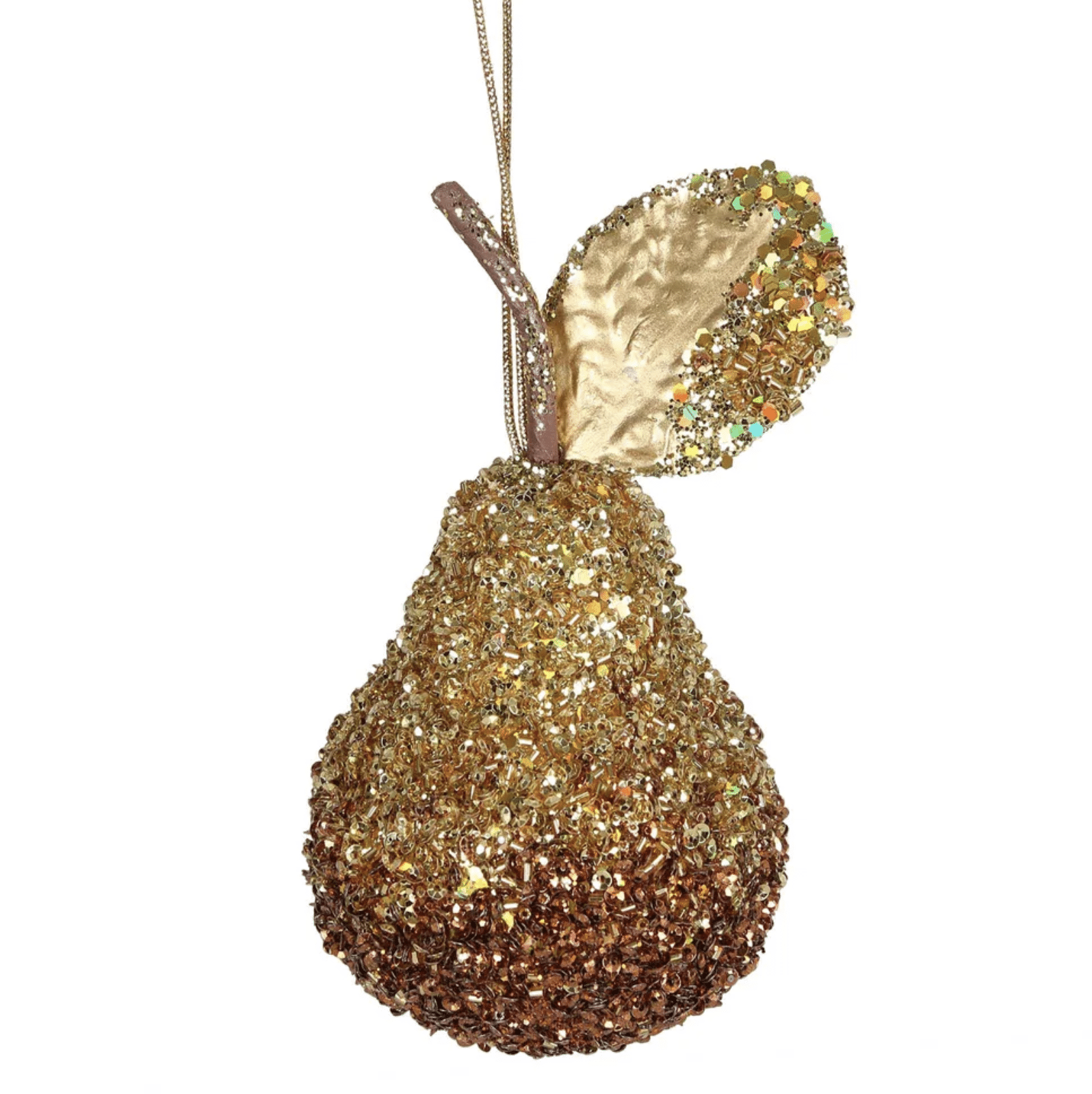 Illuminate your holiday with the Gold Pear ornament this season, ideal for infusing your Christmas tree with opulence and shimmer.