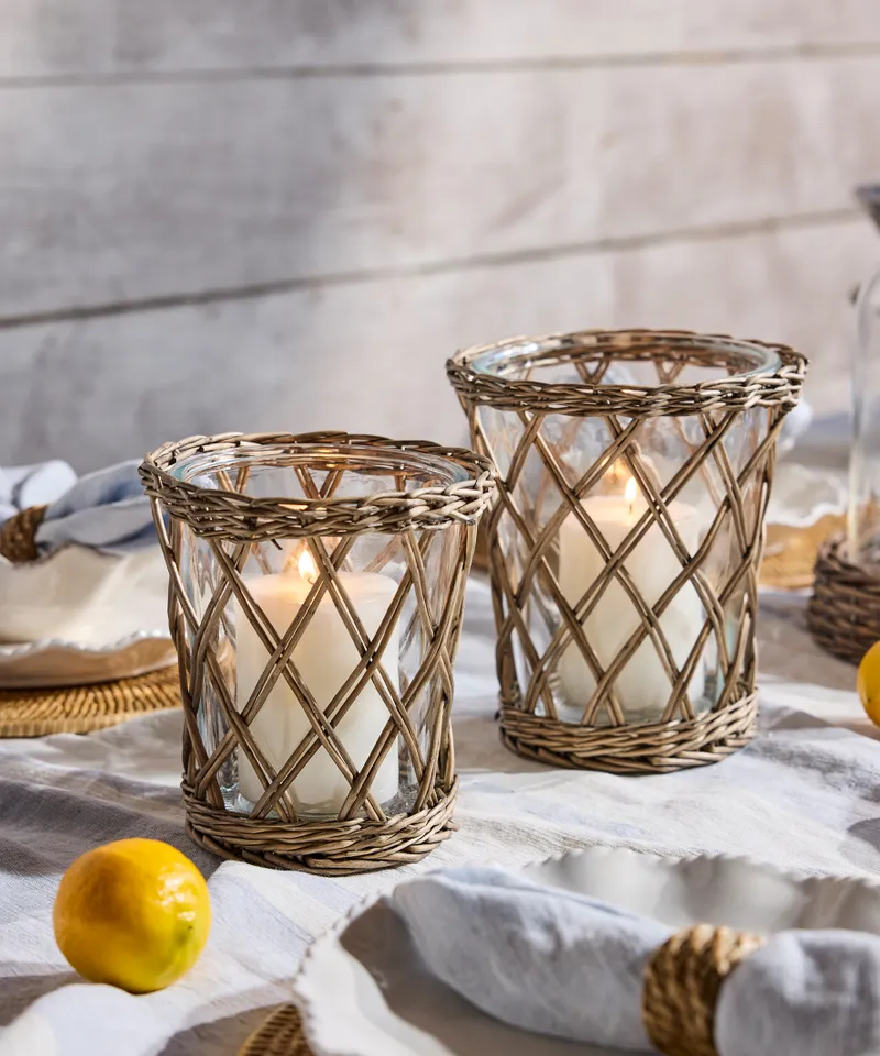 Bring a sense of rustic charm to your tablescape this Summer. The Harbour Hurricane creates a warm layered look perfect for candlelight or seasonal florals.