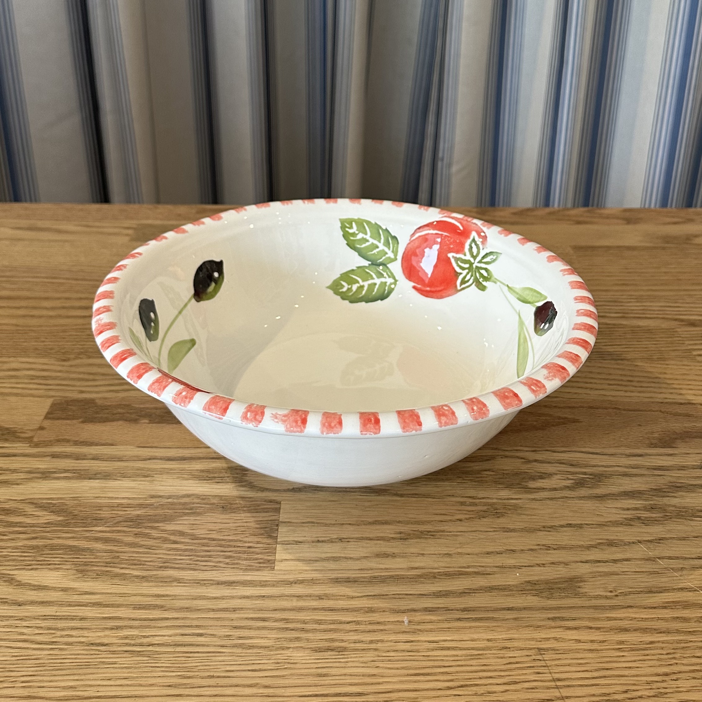 Experience the timeless charm of Italian craftsmanship with our exquisite Ceramic Tomato & Olive Bowl, meticulously hand-painted to evoke the vibrant spirit of Italy. Each piece is a testament to the artisan’s skill, capturing the essence of Mediterranean elegance. Perfect for serving salads, displaying fresh fruits, or simply as a decorative accent, this bowl adds a touch of artisanal flair to any table setting or home decor. Elevate your dining experience and infuse your space with the allure of Italian living with our beautifully crafted Italian Tomato & Olive Bowl.