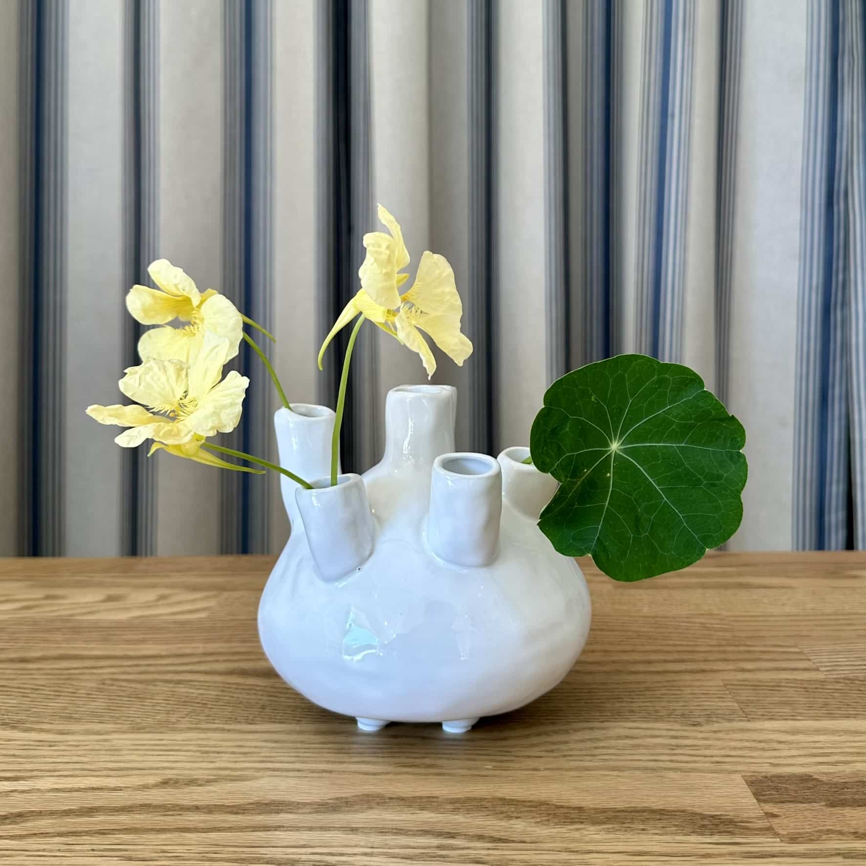 Display your florals in the most interesting vase around! The tulip vase works in any setting, with a contemporary white glaze to accent all florals.