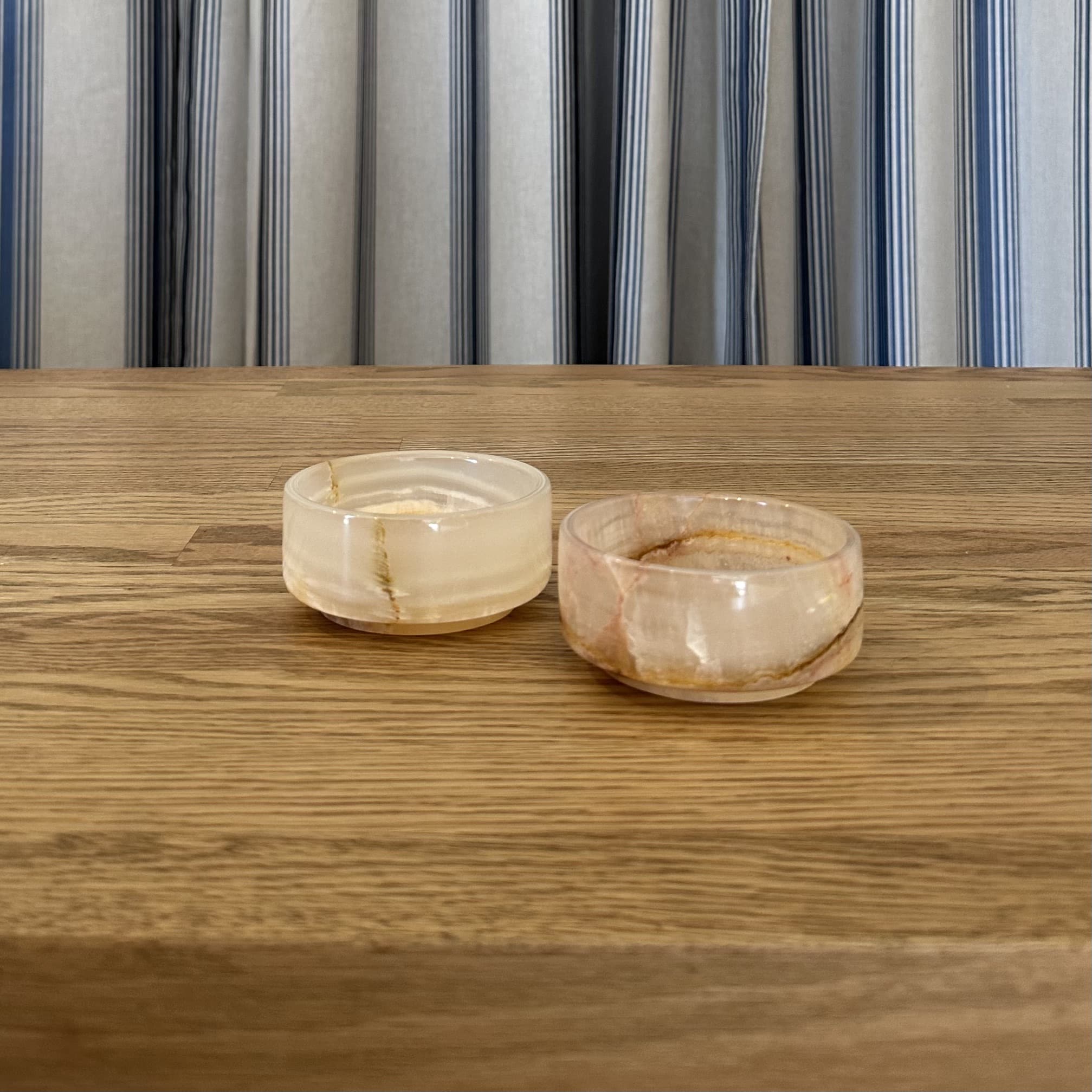 Crafted from natural white onyx, these stunning Condiment bowls are a true testament to the beauty of natural materials and the skilled craftsmanship that shapes them into timeless yet practical forms, perfect for everyday use.