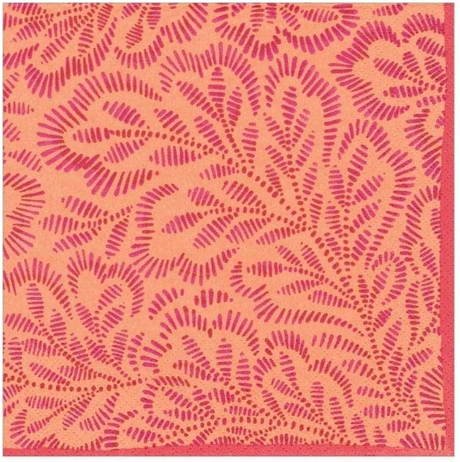 Caspari - Napkins Block Print-Leaves Fuchsia